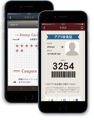 お店アプリをAppStoreやGoogle playからダウンロードしていただくだけで、利用することができるので、名前やメールアドレス等の個人情報の入力は必要ありません。